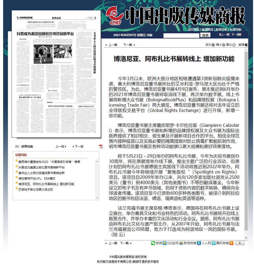 博洛尼亚、阿布扎比书展转线上 增加新功能