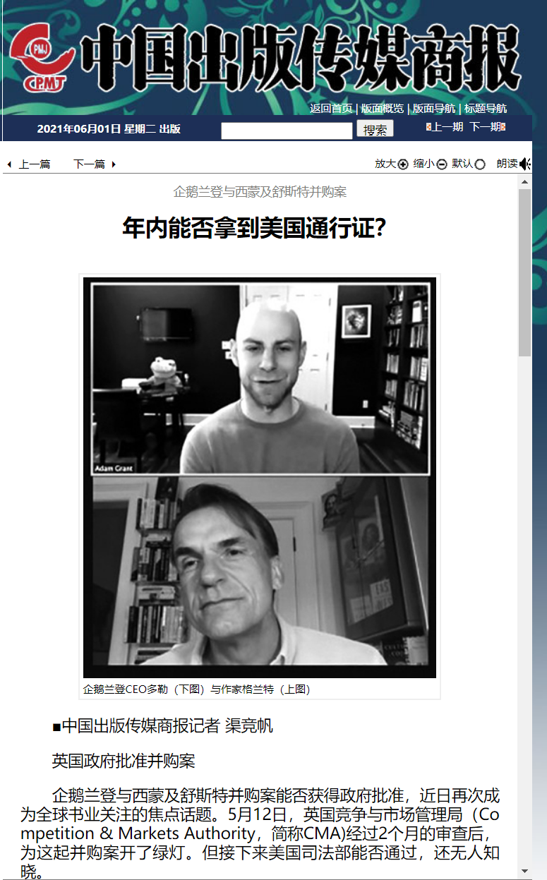 企鹅兰登与西蒙及舒斯特并购案年内能否拿到美国通行证?